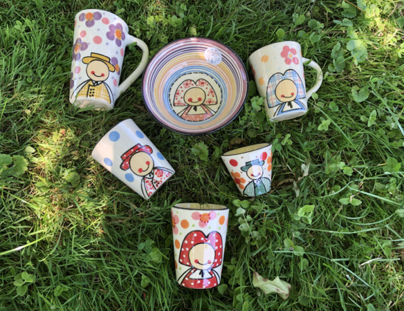 Une collection de cartes uniques en leur genre : illustrations colorées rehaussées par des objets fins et délicats (fleur en papier, tissu, strass, rubans… )